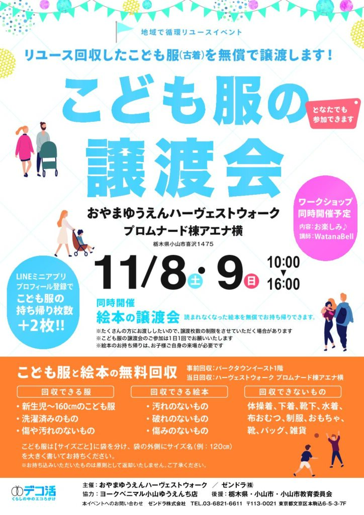 絵本の回収、こども服の回収、子ども向けワークショップも行います。