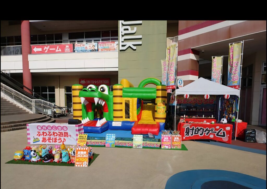 【内容】ふわふわ1回15分500円、おまつりひろば各1回500円~