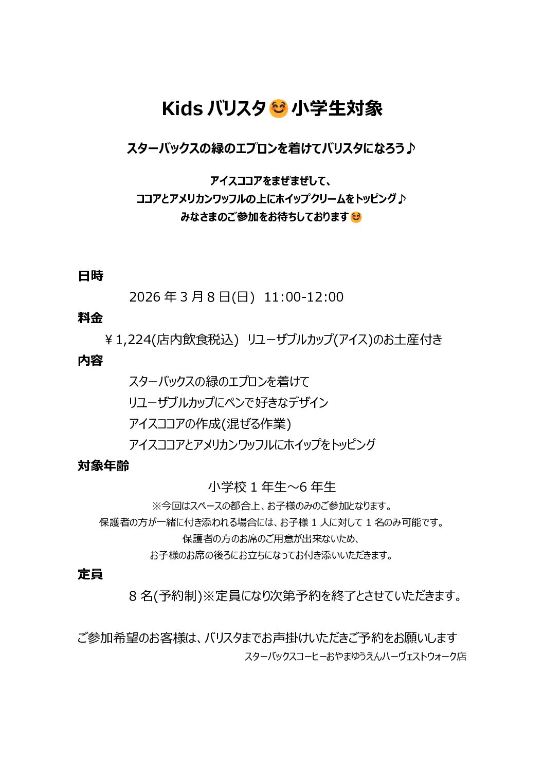 ご参加希望のお客様は、バリスタまでお声掛けいただきご予約をお願いします。