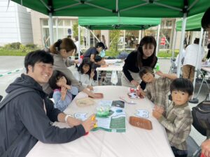 子どもたちは端切れやリボンなどを使用して、自由に装飾を楽しみながら、オリジナルのお面を作ります。