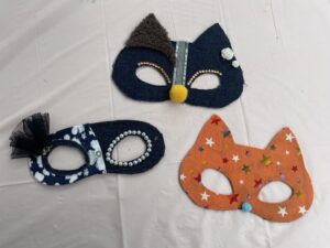 【内容】 身近な素材を活用し、仮面舞踏会のような目元部分だけを覆うお面を作るワークショップを開催。