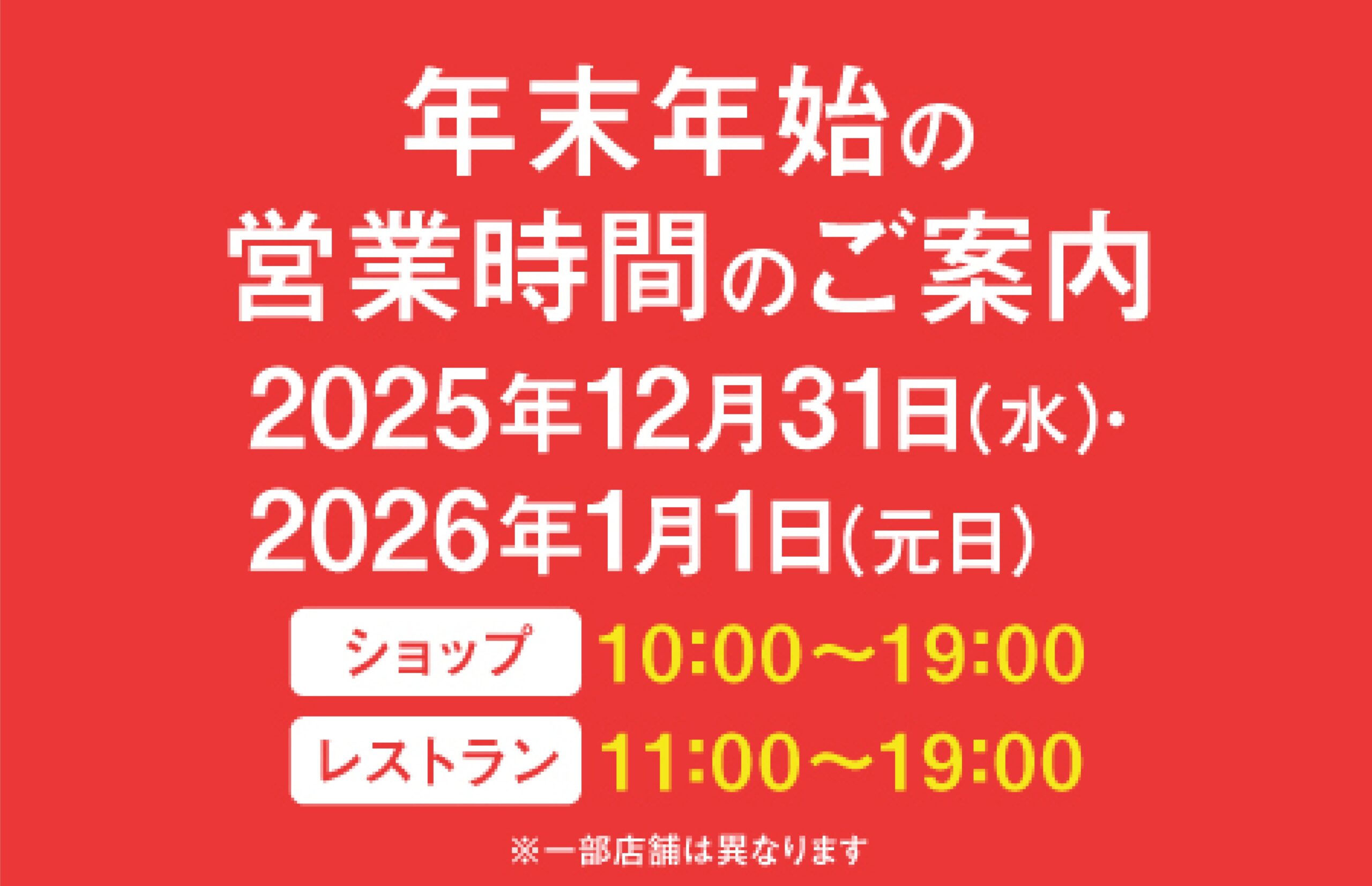 年末年始の下記期間は営業時間が変更となります。ご確認のうえご来館ください。