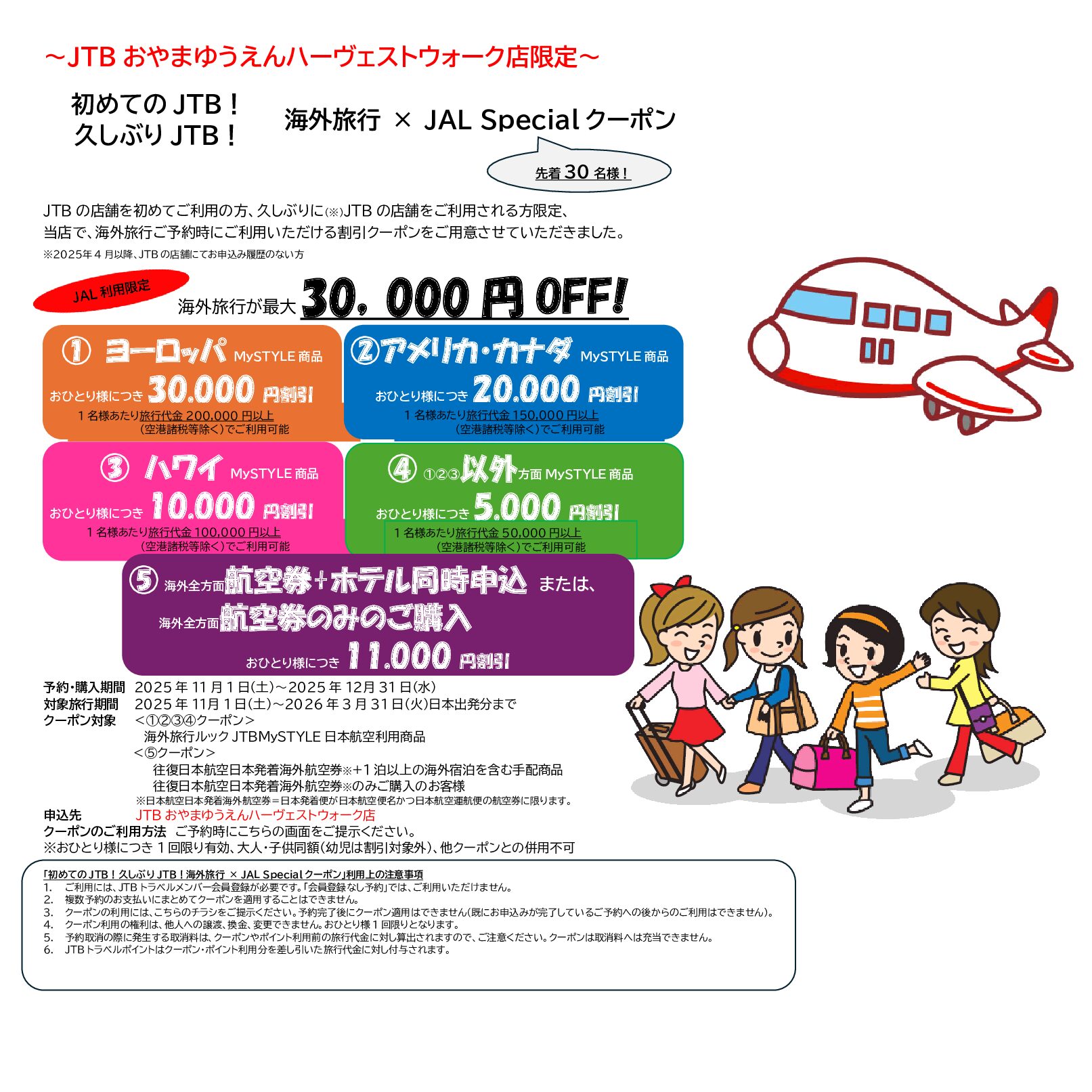 「初めてのJTB!久しぶりJTB!海外旅行 × JAL Specialクーポン」利用上の注意事項