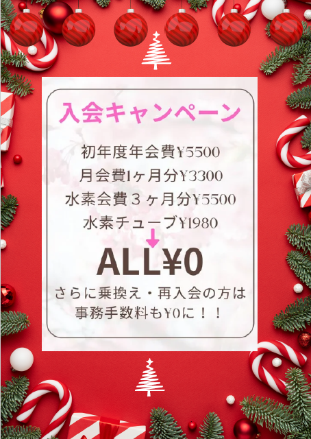 初年度年会費5,500円、月会費1ヶ月分3,300円、水素会費3ヶ月分3,300円、水素チューブ1,980円がすべて0円に!!