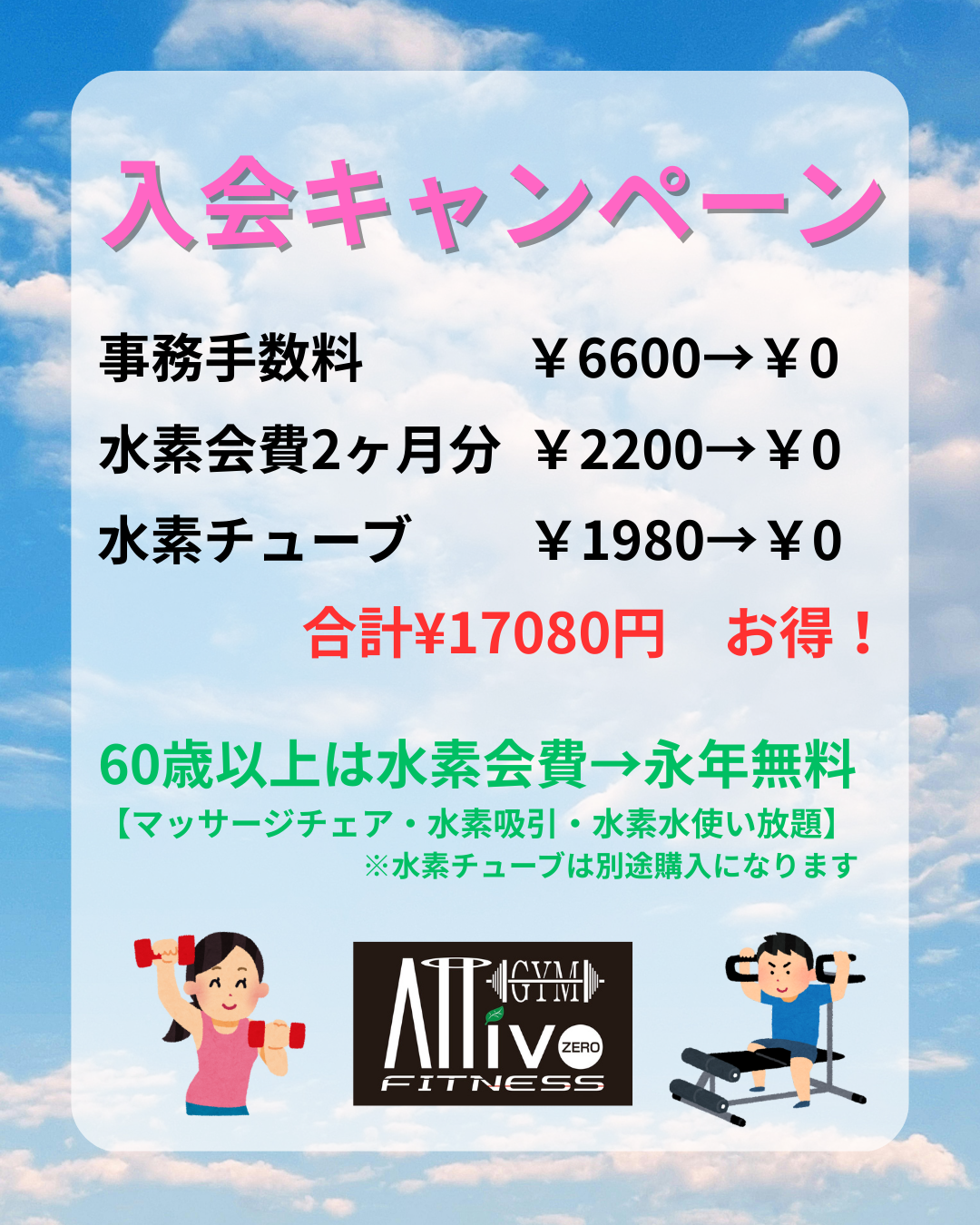 事務手数料6,600円、水素会費2ヶ月分2,200円、水素チューブ代1,980円がすべて0円に!