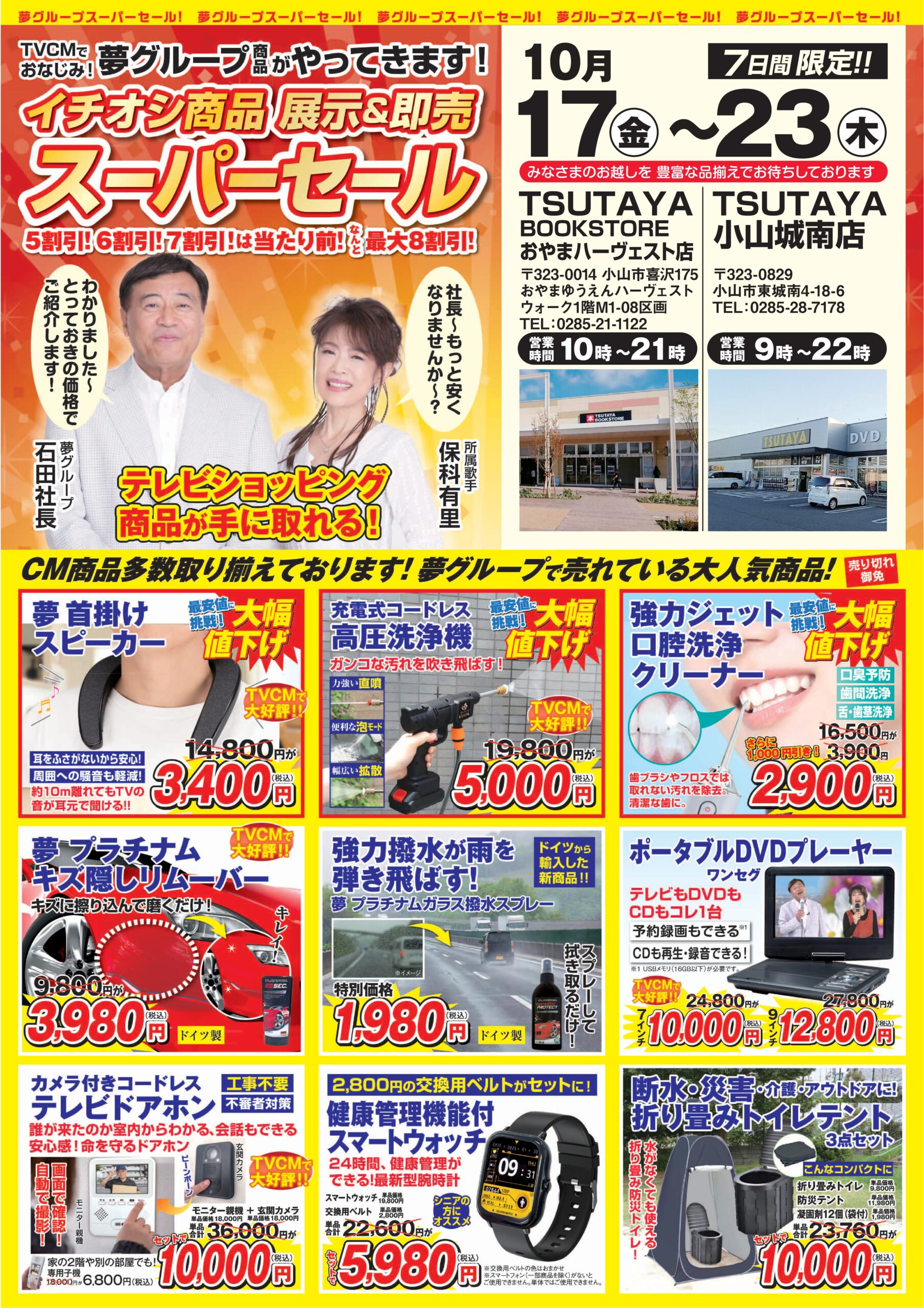 TVCMでおなじみ!夢グループ商品がやってきます!イチオシ商品展示&即売スーパーセール!